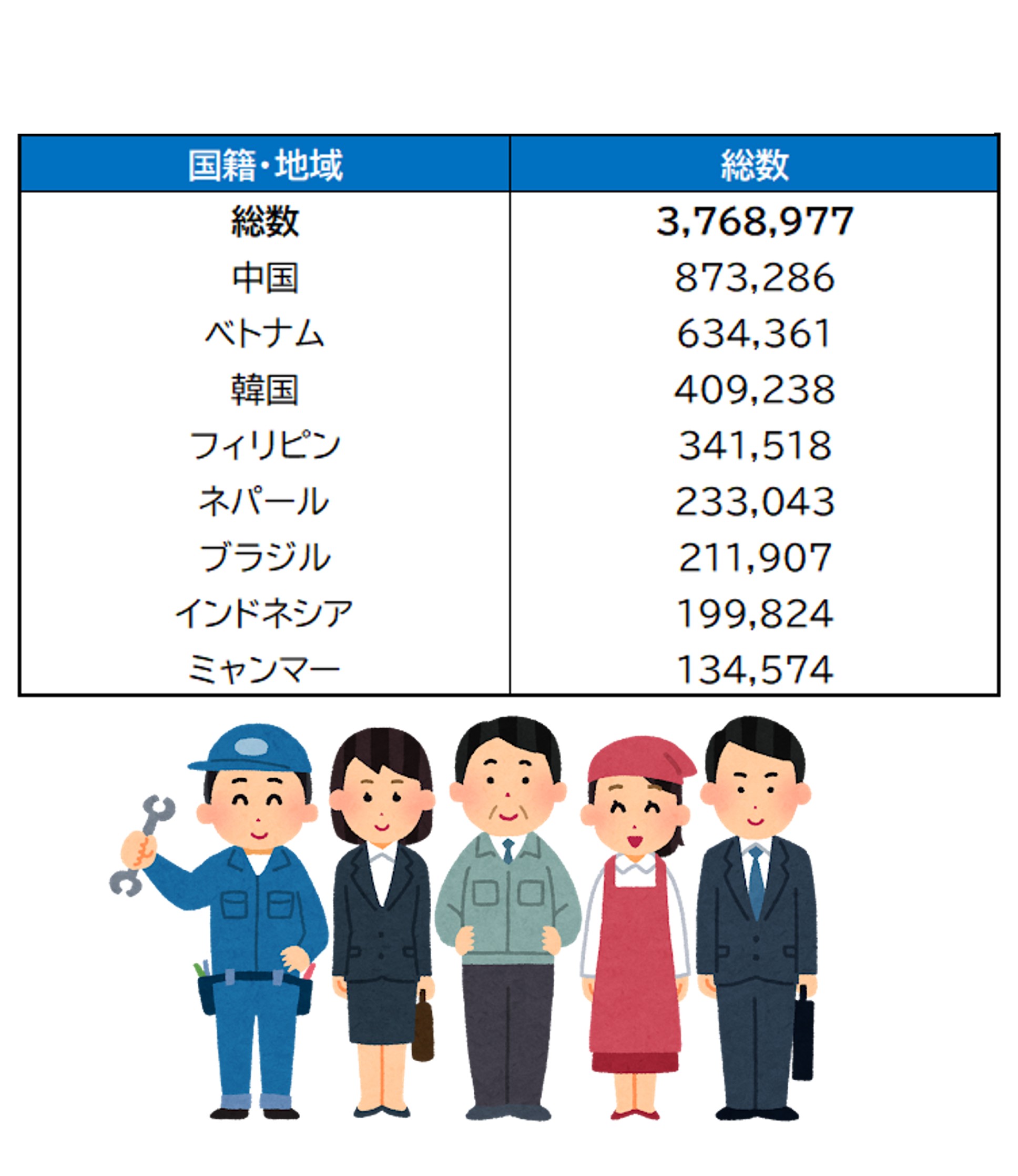 総務省発表資料によると、2024年12月現在で、日本に居住する在留外国人は376万人を超えています。