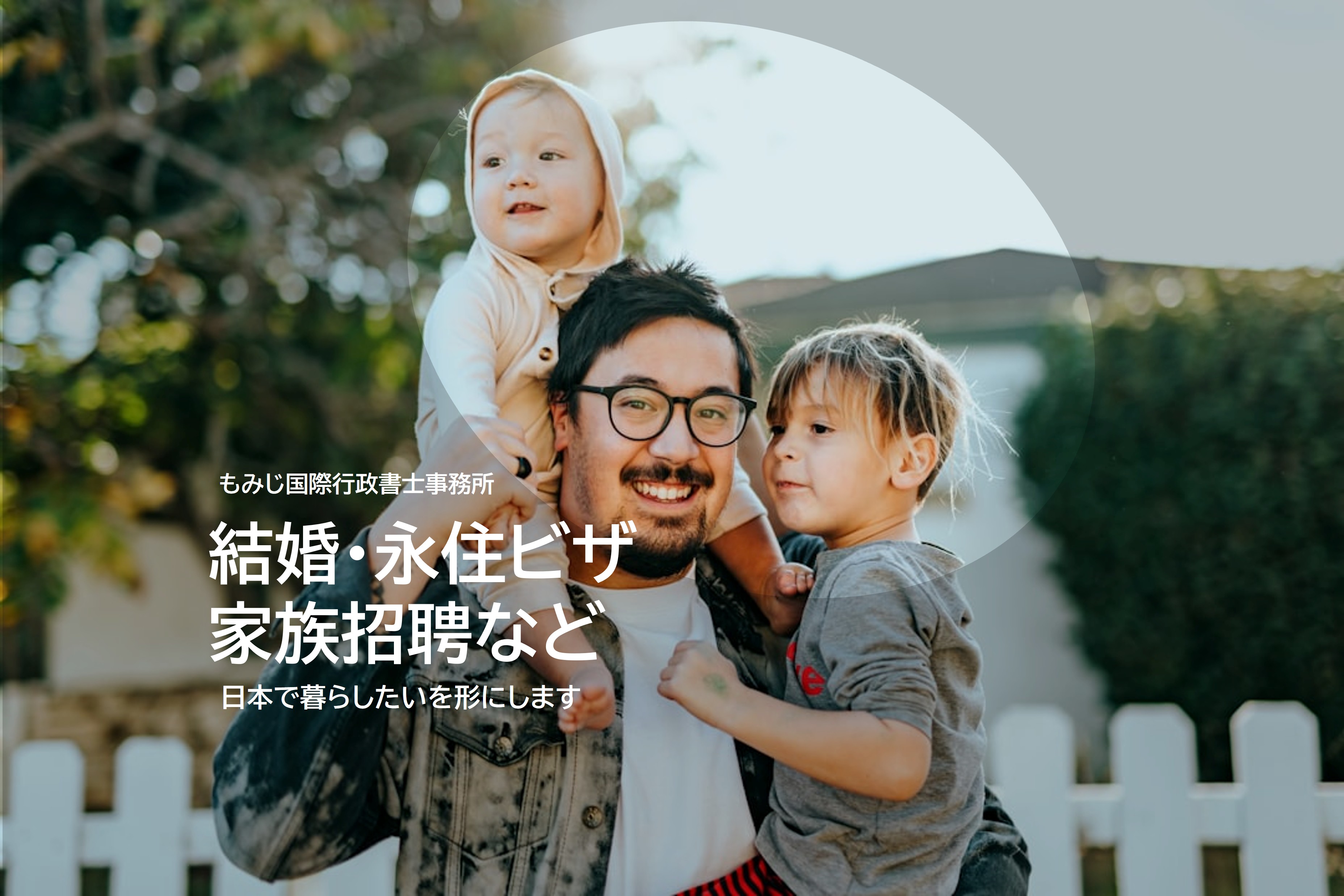 ”もみじ”は、企業の「人材紹介・オンライン面接・就労ビザ・契約・生活支援」や、個人の「永住ビザ・結婚ビザ・招聘ビザ・家探し・行政手続」など、日本で暮らす外国人をワン・ストップでサポートする行政書士事務所です。