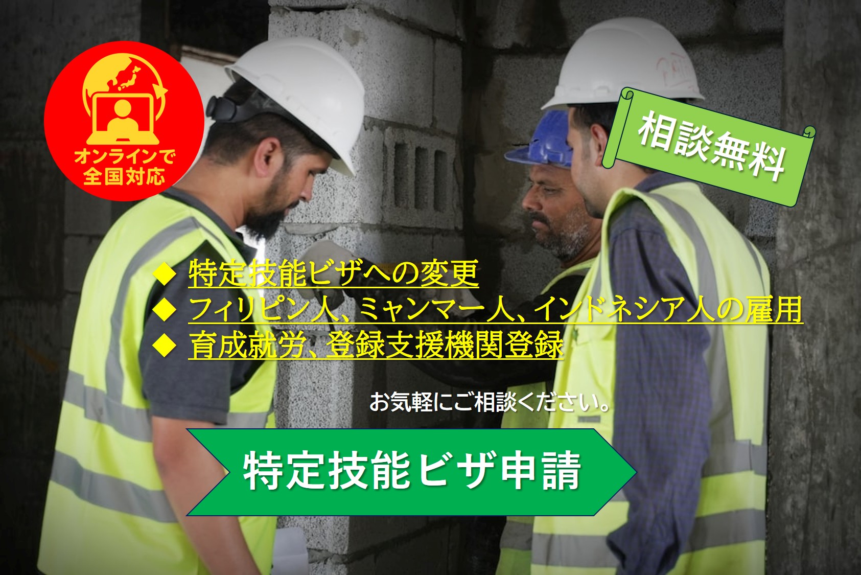 (建設業はビザ手続き以外に建設特定技能受入計画の認定申請が必要です)